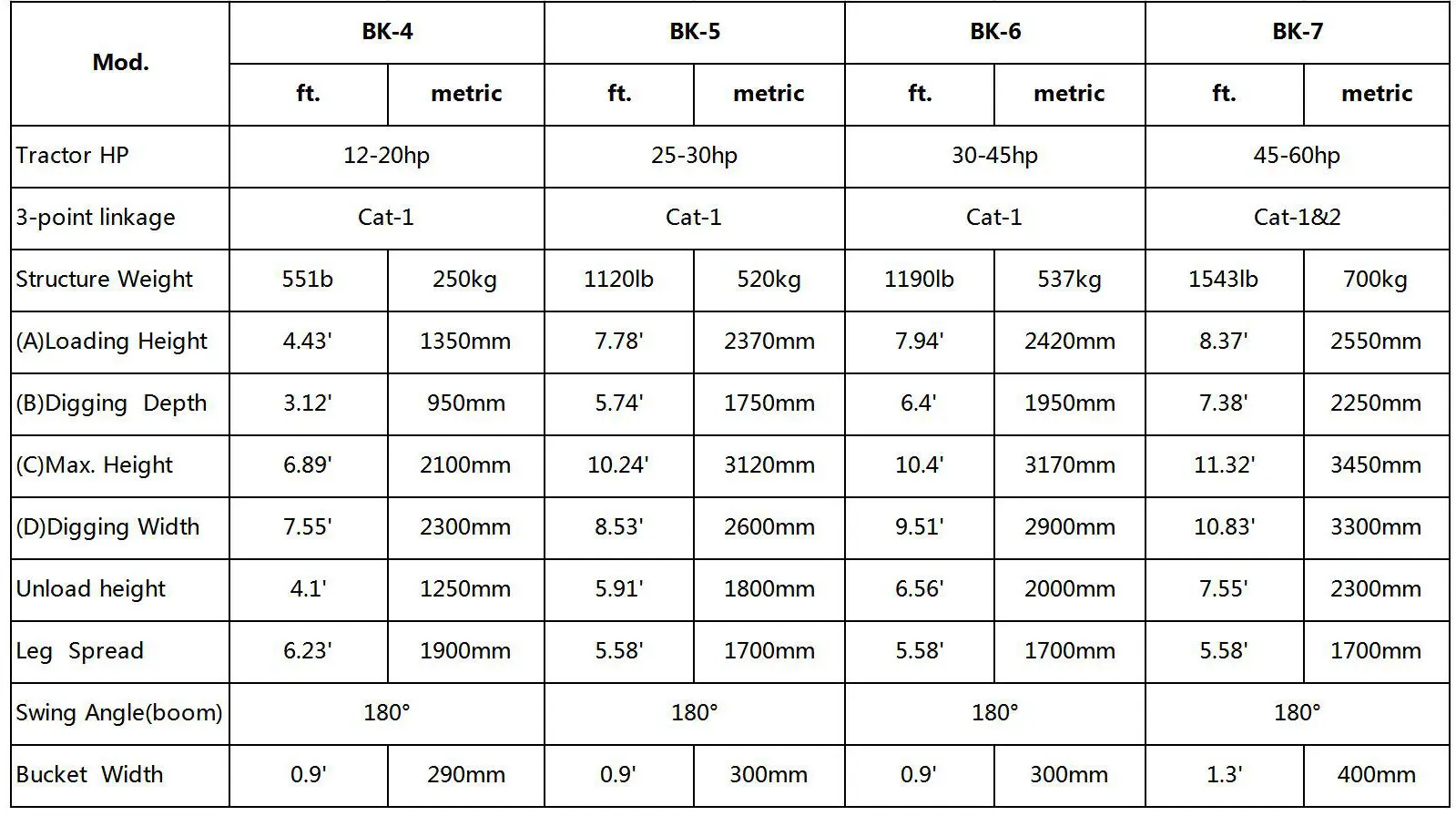 Ekskavators pievienojams 3 punktu uzkarei, ekskavatora iekārta BK5, Patiesi norādīti tehniskie parametri